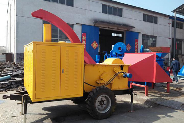 移動式樹枝粉碎機是在原有的固定式樹枝粉碎機的基礎上增加了移動輪胎,以柴油機作為動力來源,便于工人移動作業,可以隨走隨停。
